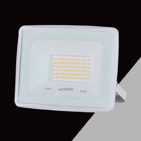 Faretto LED da 50 watt, flusso luminoso di 4500 lumen con apertura fascio di 90 gradi. Durata del faretto led di 30.000 ore. Il grado di protezione del faretto è IP65. La potenza equivalente a incandescenza è di 450 watt. Corpo in metallo Bianco, caratterizzato da un design elegante e minimale. Il faro ha una staffa regolabile che permettono di orientare il faro in qualsiasi direzione. La potenza del faro da 50W LED sostituisce un vecchio faretto alogeno da 450W, permettendo di risparmiare in bolletta.