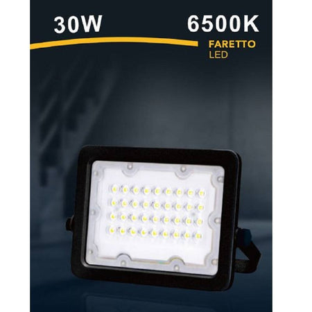 Faro LED 30W perfetto per ambienti illuminati giardini, parcheggi, piazzali e in generale qualsiasi ambiente esterno. La struttura è realizzata in metallo nero ed è dotata di staffa per supporto. Il faro è disponibile in tre colorazioni: luce fredda 6500k, luce naturale 4000k, luce calda 3000k.