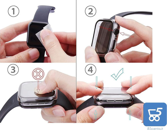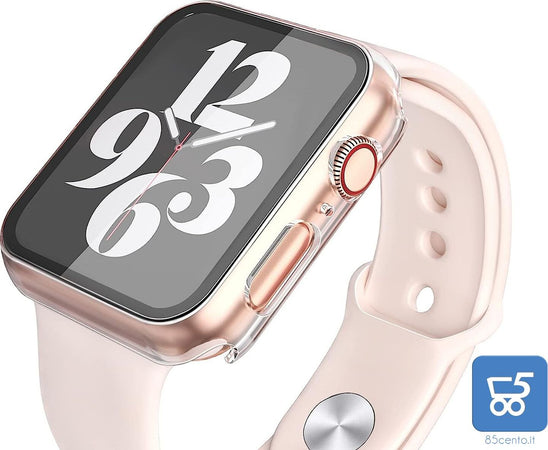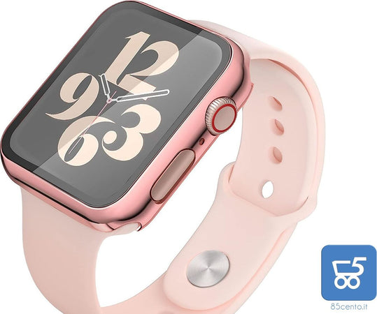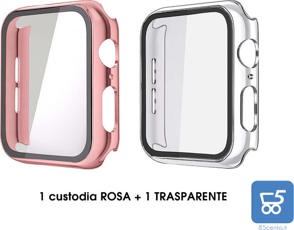 Misxi Custodia rigida con pellicola protettiva in vetro, compatibile con Apple Watch Series 6 / SE/Serie 5 / Series 4 44 mm, 2 pezzi, 1 rosa + 1 trasparente