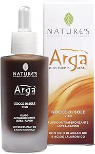 OLIO PER VISO: Gocce di sole è un fluido autoabbronzante a rapido assorbimento, che regala in poco tempo un colorito caldo, luminoso e uniforme. Studiato specificatamente per il viso, sfrutta le preziose proprietà dell’olio di Argan, un vero elisir di bellezza per la pelle.