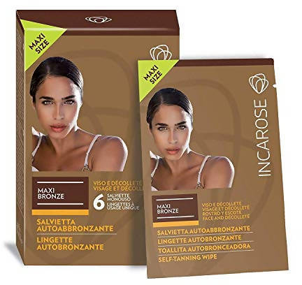 Set 6 Salviette Monouso Autoabbronzanti Maxi-Bronze Viso E Decollete Incarose Con Acido Ialuronico E Cellule Staminali Vegetali Idratanti