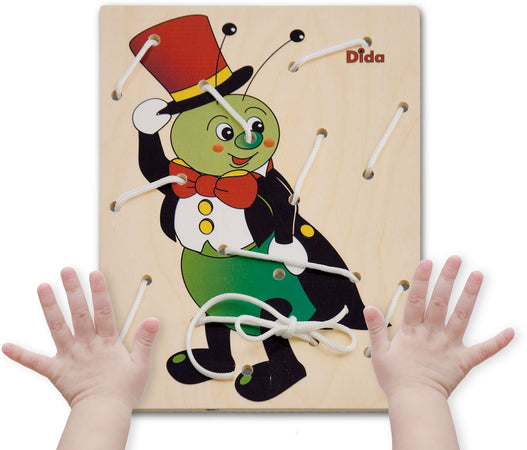Allacciatura Grillo Gioco in Legno per Bambini Metodo Montessori Dida