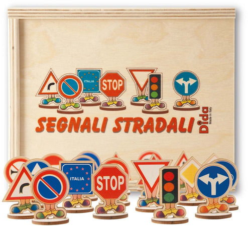 L’ideale per iniziare a fare un po’ di educazione stradale è raccontare una storia, in cui il piccolo possa immedesimarsi e ripetere facilmente le azioni e gli atteggiamenti del protagonista e supportando il racconto con l’utilizzo di giochi educativi. Il set di 20 pedine, interamente in legno, insegna ai bambini il riconoscimento dei vari simboli e la principali regole del linguaggio della strada.