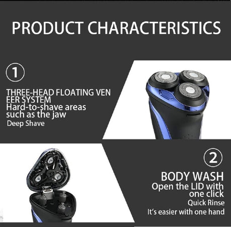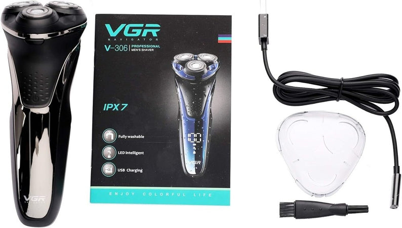 Rasoio Elettrico Uomo A 3 Teste Usb Display Lcd Batteria Ricaricabile Ipx7 V-306