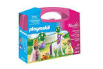 Con la linea Playmobil Princess le bambine posso immedesimarsi nel magico mondo delle principesse! Nel playset Valigetta Principessa con unicorno, principessa e principessina si prendono cura del magico unicorno. Include due personaggi, un unicorno e tanti altri accessori. Pratica valigetta per il trasporto e per riporre tutto all'interno alla fine del gioco. Adatto a bambini dai 4 anni di eta' in su.