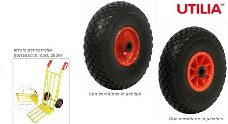 RUOTE RUOTA PIENA PER CARRELLI PORTASACCHI FORO mm. 20 RUOTA mm. 260