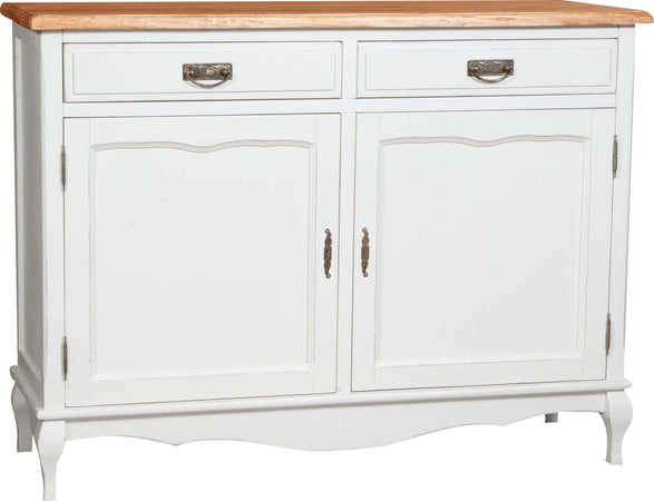 Biscottini Credenza Country in legno massello di tiglio struttura bianca anticata piano naturale L123xPR42xH92,5. Made in Italy