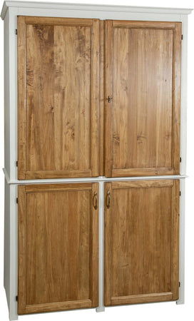 Biscottini CREDENZA CUCINA IN LEGNO MASSELLO DI TIGLIO STRUTTURA FINITURA BIANCA ANTICATA SPORTELLI FINITURA NATURALE L130XPR60XH210 CM