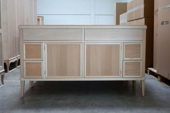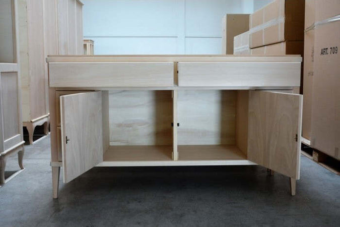Mobili 2g - credenza classica 2 porte 6 cassetti legno grezzo l.150 p.47 h.86