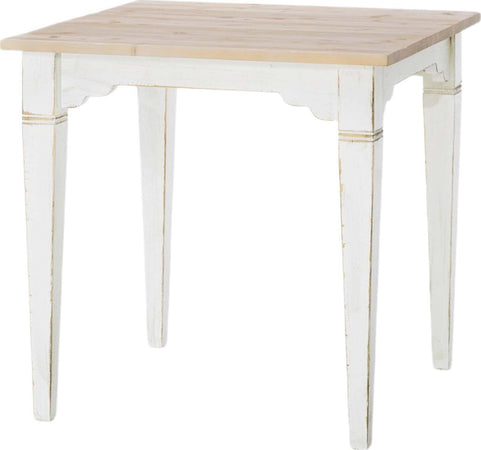 Mobili 2g - tavolo in abete laccato bianco consumato effetto shabby con piano tinta naturale misure l.80 p.80 h.78 (6080)