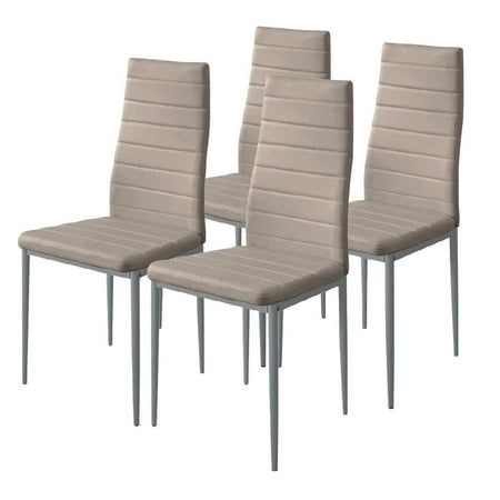 Sedia Moderna 4pz Metallo Verniciato Pelle Ecologica Sala Pranzo Cucina Tortora