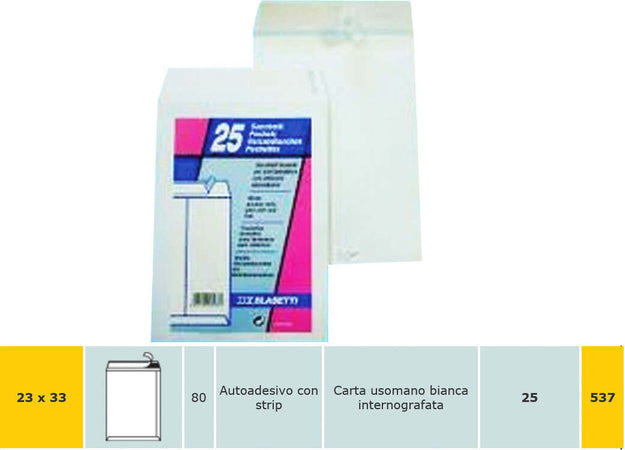 Le classiche buste a sacco in carta bianca ideali per spedizioni e molto altro. L'apertura strip e la chiusura autoadesiva le rendono comode e pratiche da usare. Misura 23x33 cf 25