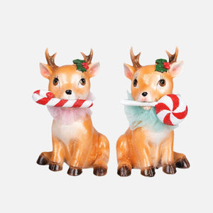Renna seduta con cucciolo statuetta in Resina, decorazione natalizia