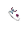 Anello da donna e bambina realizzato in argento 925%. Laterali con Stitch e fiore con smalto.