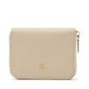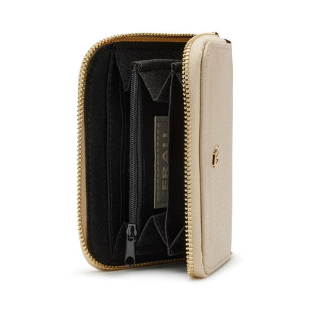 Portafoglio piccolo in pelle bottolata Frau. Pratico e compatto, con brand detail dorato e comoda chiusura a zip. All'interno presenta scomparti per carte, contanti e portamonete con zip. 13x10x2. Made in Italy.
