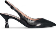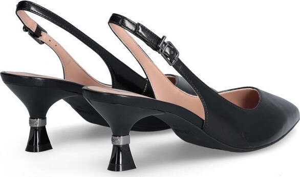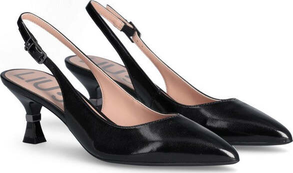 Liu Jo sling back Gaia 24 metallic black. Interno in pelle, plantare leggermente imbottito e fondo gomma e tacco a clessidra con logo 6 cm.