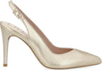 Liu Jo sling back Vickie 03 metallic light gold. Interno in pelle, plantare leggermente imbottito e fondo gomma e tacco a spillo 9,5 cm.