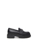 Mocassini donna in pelle Nero Giardini con morsetto in metallo. Interno in pelle, fondo gomma con tacco a blocco 4 cm. Made in Italy.