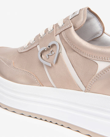 Nero Giardini sneakers donna in pelle laminata col. osso
