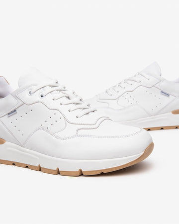 Sneakers uomo in pelle Nero Giardini con inserto in contrasto sul tallone. Interno in pelle con plantare estraibile. Fondo gomma 4,5 cm. Made in Italy.