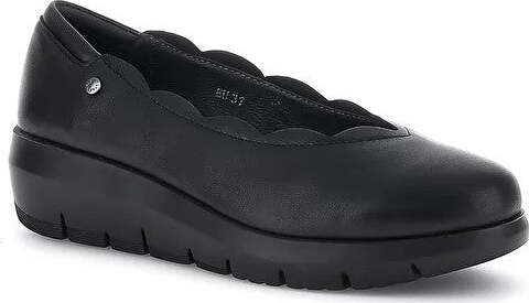 Ballerina in nappa black Stonefly. La tecnologia Blusoft supporta la tua camminata garantendo massimo comfort e ammortizzazione. Fondo zeppa 4,5 cm.
