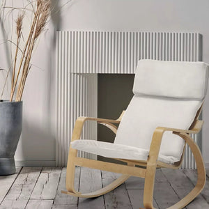 Poltrona a Dondolo Moderna legno Betulla Sedia Relax Cotone Beige Poggiatesta