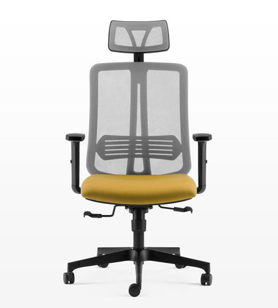 Poltrona operativa con poggiatesta, meccanismo syncro multiblock e traslatore sedile in tessuto ignifugo o ecopelle