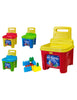 Simpatica sediolina con contenitore interno con blocchi di costruzione. E' un perfetto secchio di costruzioni da conservare, chiudendo il coperchio si trasforma in una sedia per bambini. Tanti mattoncini colorati di grandi dimensioni adatti alle manine dei piu' piccoli.