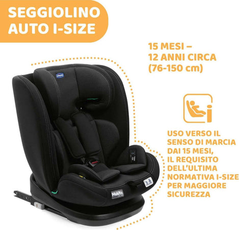Chicco Seggiolino Auto Mokita I-size, Con Sistema Isofix, Per Bambini Di Altezza Compresa Tra 76 E 150 Cm, Utilizzabile A Partire Dai 15 Mesi, Riduttore Incluso Omologazione Ece R129/03 Omologato