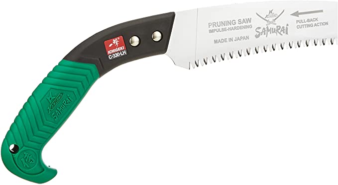 Il segaccio Samurai per potatura lama curva con fodero di 33 cm è uno strumento di alta qualità per la potatura di alberi, arbusti e piante.