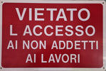 Segnaletica Vietato L'Accesso Ai Non Adetti Ai Lav 30X20 Pvc