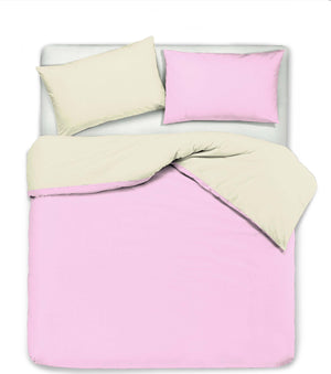 Set Copripiumino E Federe Letto in Cotone Colore Naturale E Rosa Bicolor Double Face Parure Copripiumino Made in Italy
