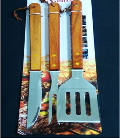 Set Per Barbecue Grill In Acciaio Manico Legno Coltello Paletta Forchettone