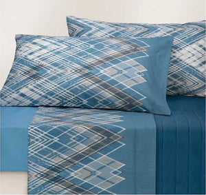 Completo Letto Lenzuola Federe Letto Stampa Fantasia 100% Cotone Made In Italy Ginkgo Azzurro
