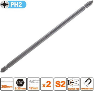 Kit 2pz Di Bits Da 200mm Punte Doppie Inserti Ph2 + Sl6 Punta S2 Magnetica 57246