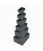 Il set comprende scatole di diverse dimensioni: 31x22x12 cm, 28x20x11 cm, 25x18x10 cm, 22x16x9 cm, 19x14x8 cm, e 16x12x7 cm.