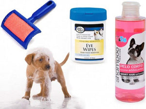 Super richiestoKit Pulizia Cani Shampoo Azione Addolcente Salviettine Spazzola Cardatore Pelo Corto