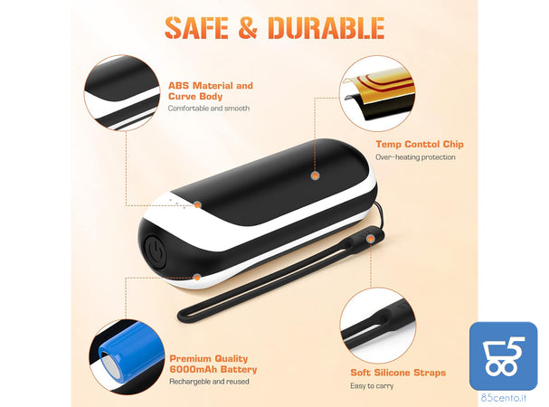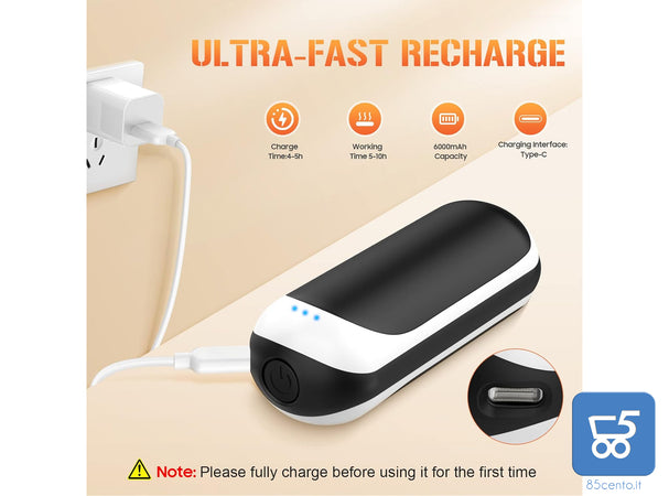 Scaldamani Ricaricabile 6000 mAh Portatile con 3 Modalità Riscaldamento a Mano Doppio Lato