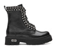 Anfibio femminile, con tomaia in pelle e occhielli metallici disposti in doppia fila. La suola carrarmato lo rende adatto anche per ambienti outdoor senza dimenticare lo stile glam-rock e più romantico del modello.
