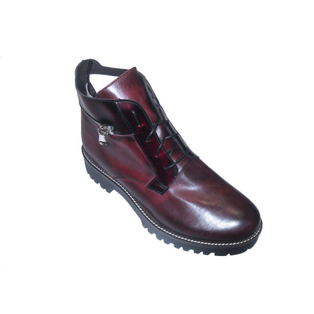 Stivaletto donna con carro armato Exton tronchetto bordeaux suola in gomma Stivali Combat Boots Donna Made in Italy