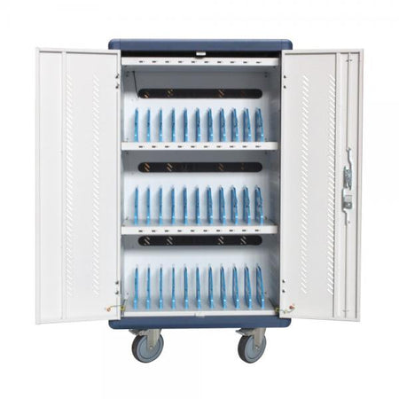 Carrello Stazione di Ricarica USB Ventilato per 30 Notebook/Tablet/Smartphone Bianco/Blu