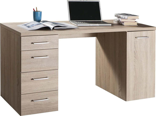 Scrivania con 5 cassetti, postazione porta PC da ufficio e cameretta 140 cm Made in Italy