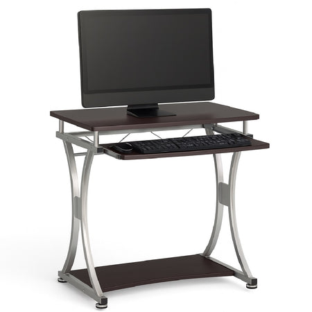 Scrivania Porta PC Tavolo Studio con Porta Tastiera e Ripiani Metallo e Legno Silver Marrone