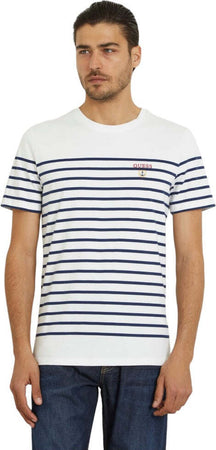Guess t-shirt bianca blu a righe maglietta uomo Guess art. M4GI33 KC6X1