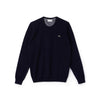 Maglione Lacoste da uomo in blu navy con iconico coccodrillo ricamato sul petto. Caratterizzato da uno stile minimal e raffinato, questo capo con girocollo classico e realizzato in morbido cotone o misto lana (a seconda del modello) e garantisce comfort e traspirabilita. Ideale per un look casual chic nei mesi piu freschi.