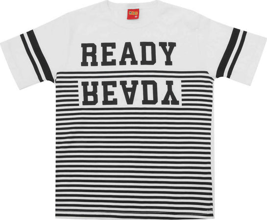 T-SHIRT Bambino 100% Cotone Bianca Nera Stampata Righe Maglia Mezze Maniche Girocollo Bimbo Maglietta Estiva Stampa Ready Kyly