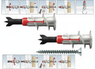 Tassello autoforante per installazioni su pannelli e lastre di cartongesso, pronto all’uso con punta metallica preinstallata, all’inserimento della vite la punta viene espulsa cadendo nel vuoto retrostante, le lamelle anti-rotazione garantiscono il bloccaggio del tassello in fase di installazione della vite.