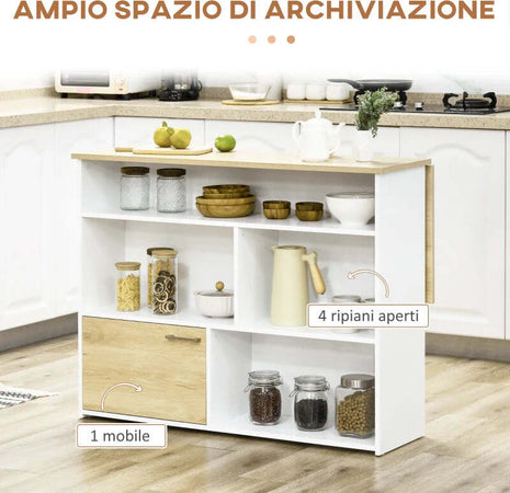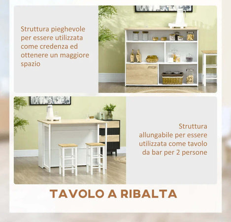 Tavolo da Bar Moderno in MDF per 2 Persone con 4 Ripiani Aperti e Armadietto, 116x79.5x91 cm MN4835-953V00WTMN4