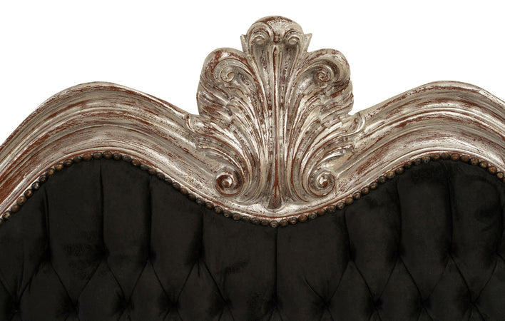 La testata da letto di dimensioni lunghezza 173 cm, profondità 10 cm, altezza 162 cm in legno massello di faggio personalizzerà la tua camera nel modo più bello. La sua solida struttura è rivestita da un tessuto imbottito artigianalmente ed è in argento anticato. Uno stile classico perfettamente rivisitato che vestirà il tuo letto di una nota raffinata e seducente.
