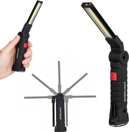 Mini Torcia Led Cob Luce Bianca Rossa Batteria Ricaricabile Base Calamitata Gloriashoponline